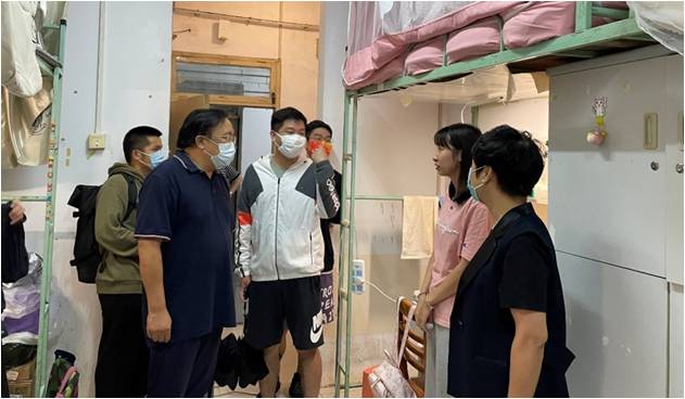 期间,王秀峰、周莉莉一行与同学们充分交流,亲切地问到今天学校准备的免费晚餐是否可口,同学们对学校中秋节准备的特别晚餐也都给出了好评。当来到管理学院研究生新生宿舍,王秀峰还询问了研究生新生对于特殊时期在学校的学习生活是否能够适应、对于学校各方面的安排是否满意,研究生同学们表示适应良好,对于学校各方面的安排都比较满意。