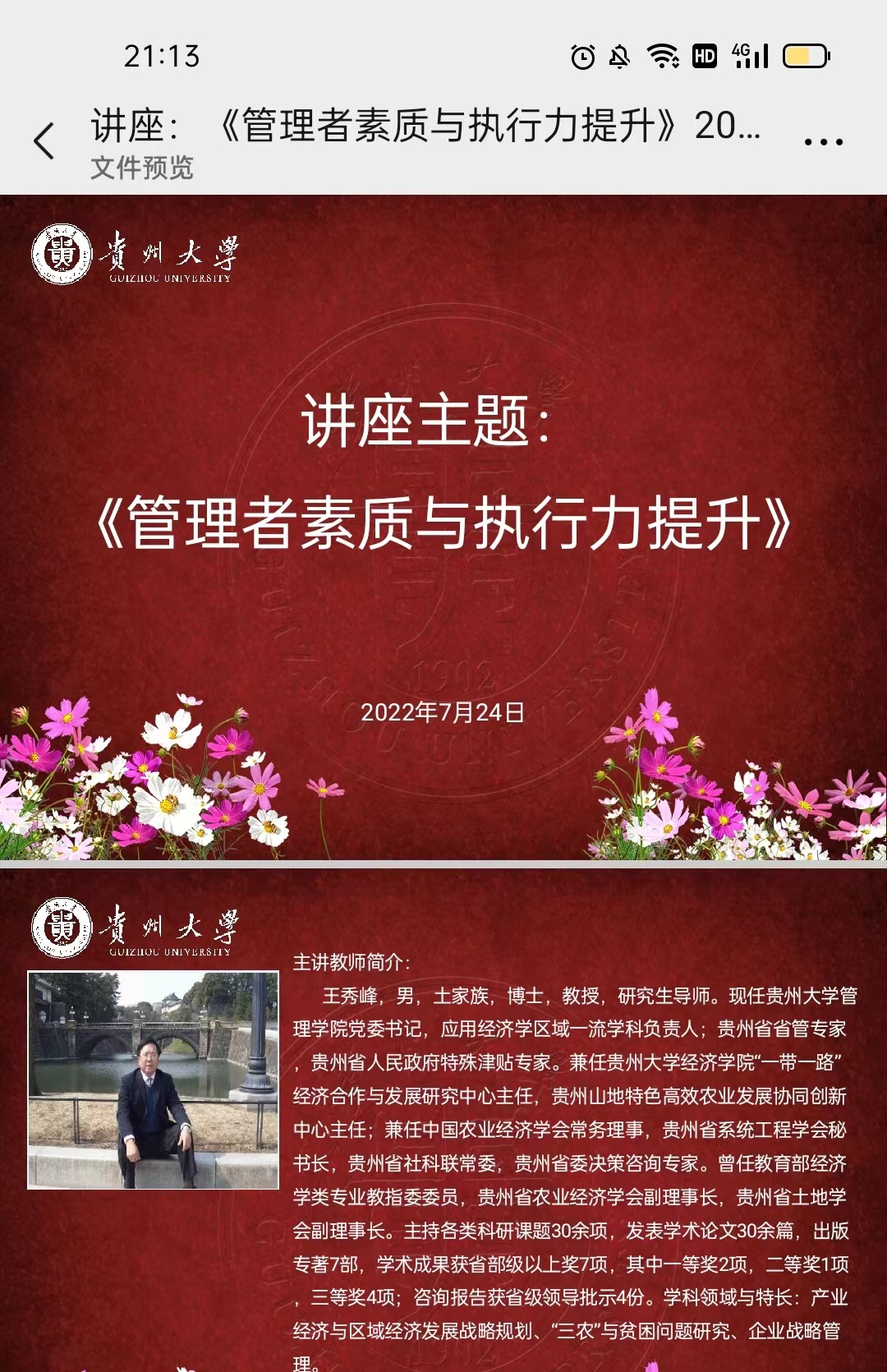 2022年7月24日,管理学院MBA教育中心邀请管理学院党委书记王秀峰教授为20级21级MBA研究生成功举办了题为《管理者素质与执行力提升》的管理知识讲座。讲座采取腾讯会议的方式进行,20级21级四百余名研究生聆听了此讲座。