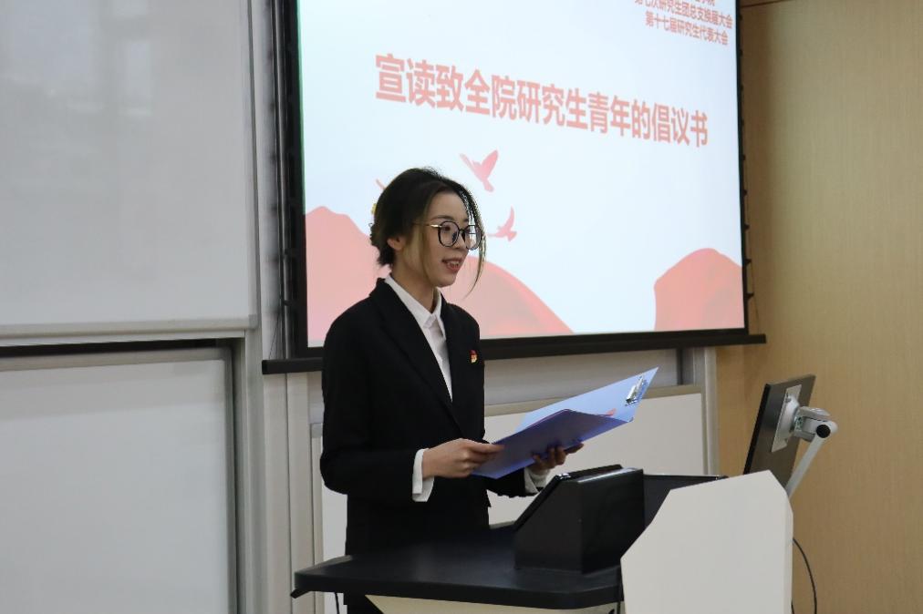 最后,胡玲玲同学宣读“学习二十大,永远跟党走,奋进新征程”——致全院研究生青年的倡议书。号召管理学院广大研究生青年们认真学习贯彻落实党的二十大精神,坚定不移听党话、跟党走,提高政治站位,涵养政治定力;增强自身才干,争做四有青年;坚持知行合一,强化使命担当。