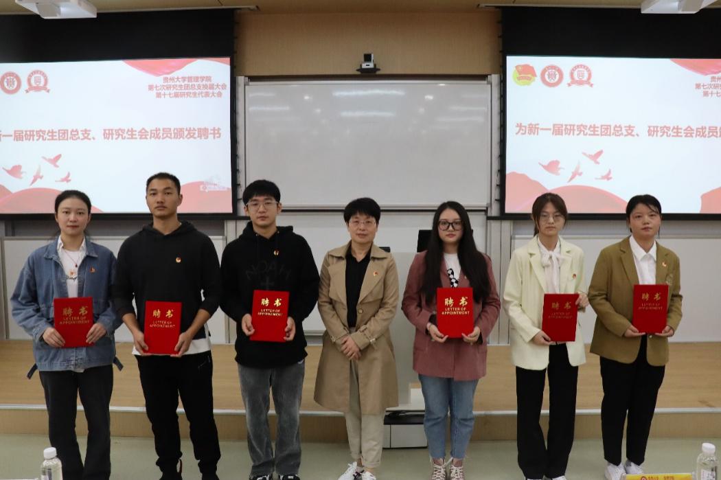 另外,会议选举产生管理学院第七届研究生团总支委员会委员,并由研究生科科长徐兰为他们颁发聘书。