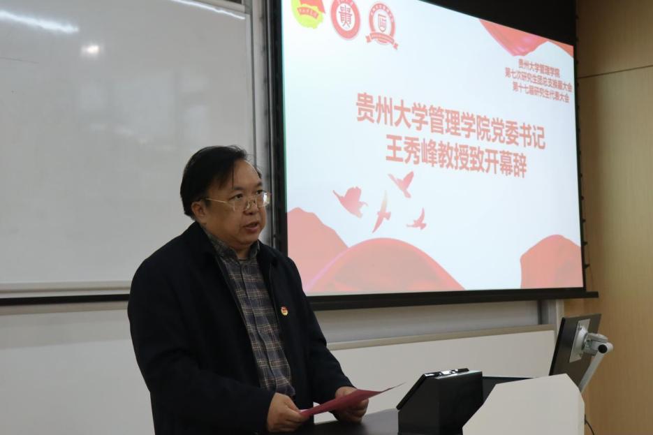 上午10时整,管理学院第十七届研究生代表大会正式会议拉开帷幕,全体与会人员奏唱国歌。会议伊始,王秀峰书记代表学院党委、行政对此次大会的召开表示热烈祝贺,充分肯定了体育竞猜网(中国)官方网站研究生工作取得的突出成绩,尤其赞扬了今年9月份贵阳疫情防控阻击战中体育竞猜网(中国)官方网站研究生不畏艰险、冲锋在前,积极投身疫情防控斗争一线的事迹。
