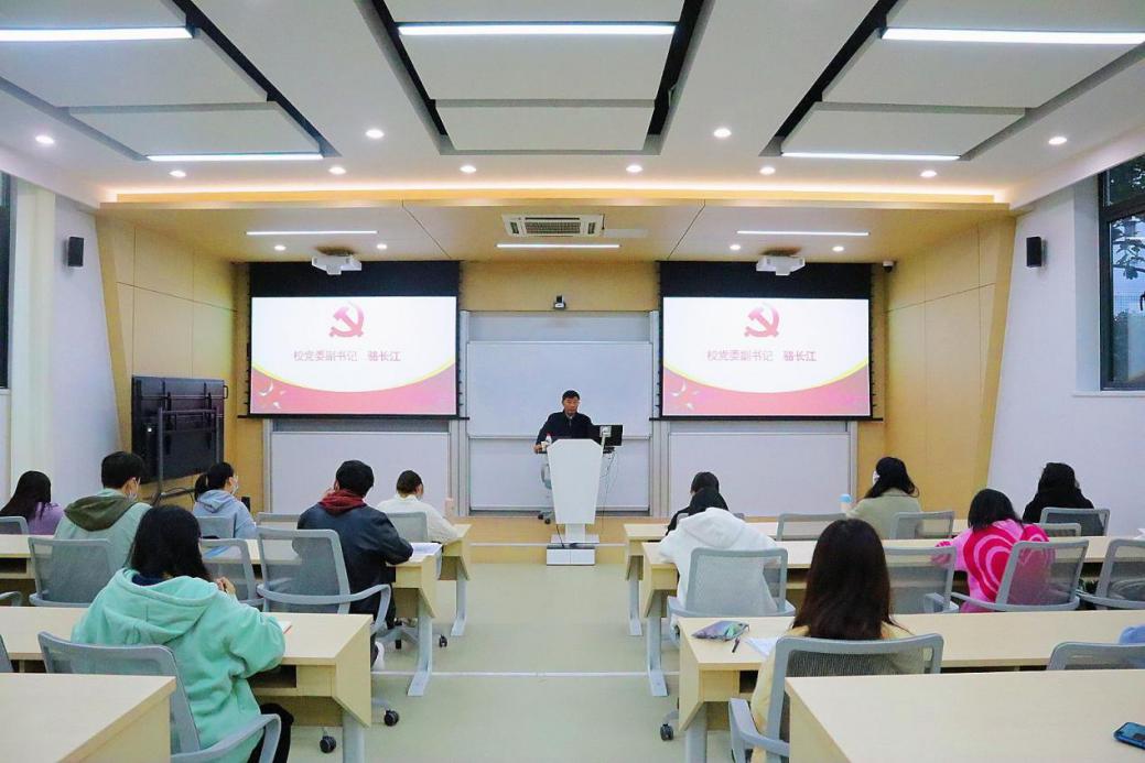 为积极开展管理学院党员发展工作,切实提高体育竞猜网(中国)官方网站学子党性素养,2022年10月30日上午,校党委副书记骆长江在管理学院致远楼102教室为体育竞猜网(中国)官方网站第三十七期入党积极分子讲授专题党课,宣传、贯彻党的二十大精神。