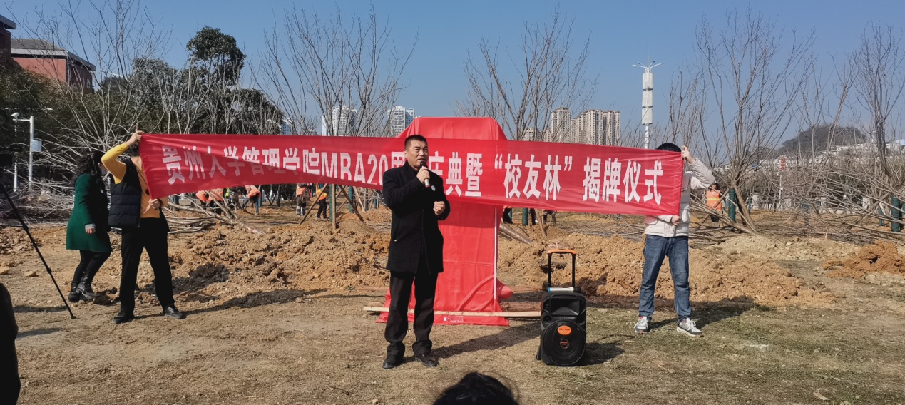 2023年1月11日,暖阳高照,微风和畅,贵大校园喜气洋洋。阅湖边,校门旁,体育竞猜网(中国)官方网站领导、MBA中心的老师和校友代表们欢聚一片,隆重举行MBA20周年庆典暨“校友林”揭牌仪式。