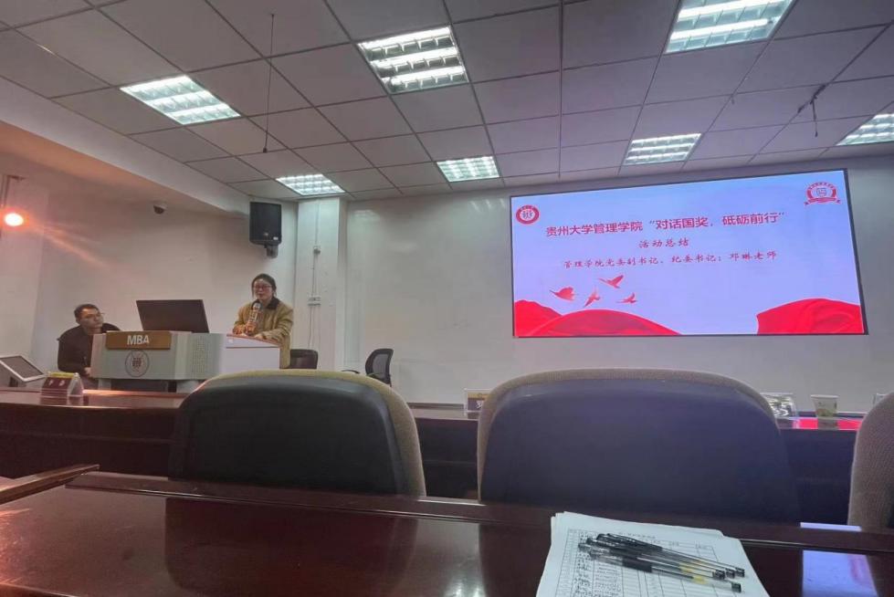 最后,邓琳副书记对本次活动进行总结,她强调向榜样学习,才能成就更好的自己,希望同学们通过这次国奖经验分享交流会,明确自己的目标,找准自己的方向,迈向更高的学术境界,以更加积极的精神面貌和良好的心态投入到科研学习当中,享受大学美好生活的同时保持学习的主观能动性,再接再厉,在新学期,开好局,做有志气、有骨气、有底气的新时代青年。