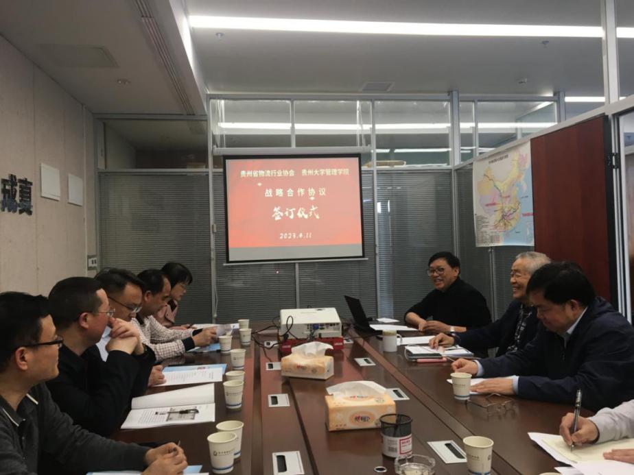 2023年4月11日下午,贵州省物流行业协会-体育竞猜网(中国)官方网站签约仪式在贵州省物流行业协会会议室举行。贵州省物流行业协会会长任仁、贵州省物流行业协会原会长李大忠、贵州省物流行业协会常务副会长罗亨文,贵州大学发展规划处处长冉光圭、管理学院院长李烨、副院长李本光、王婷、院党委副书记邓琳出席签约仪式。贵州省物流行业协会和体育竞猜网(中国)官方网站相关部门负责人参加。贵州省物流行业协会副会长兼秘书长高波主持此次仪式。