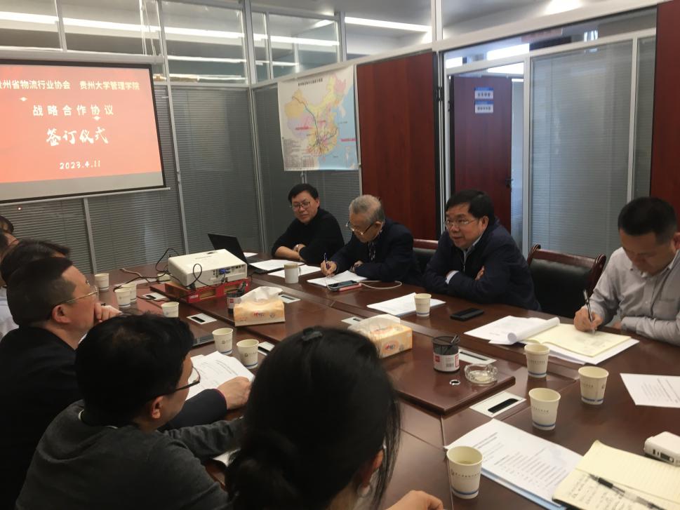 李烨院长介绍了贵州大学及管理学院发展情况,从学科专业、服务社会、人才培养、师资队伍、科学研究等方面作了详细介绍。他指出,贵州大学学科专业全、涉及面广,基本涵盖了贵州产业发展的各行各业,管理学院在物流领域学科专业有一定的研究基础和人才储备,希望双方以此次战略合作协议签订为契机,建立起更加紧密的战略合作关系,在人才培养、物流领域课题研究、师生实践培训以及学生就业等多方面开展深度合作。