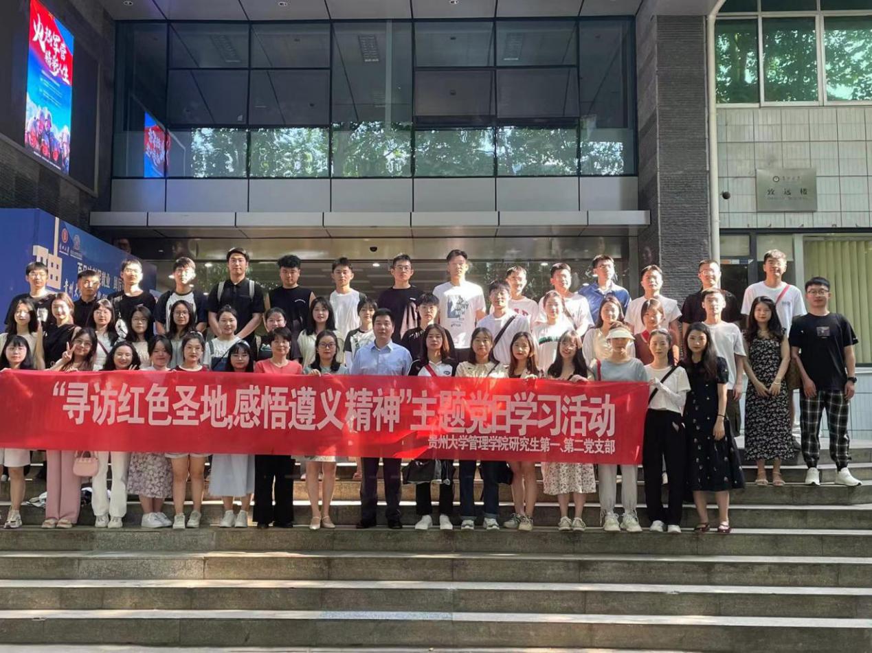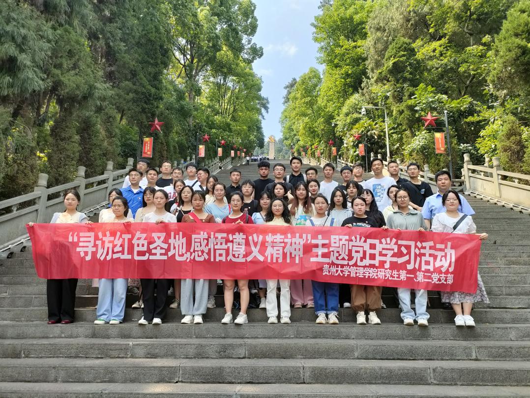 深入学习贯彻习近平总书记在“学习贯彻习近平新时代中国特色社会主义思想主题教育工作会议”中的重要讲话精神,牢牢把握“学思想、强党性、重实践、建新功”的总要求,2023年5月31日,在学院党委的组织下,体育竞猜网(中国)官方网站研究生第一、第二党支部赴遵义市开展了“学习贯彻习近平新时代中国特色社会主义思想主题教育暨‘寻访红色圣地 感悟遵义精神’”主题党日学习活动,通过对革命先烈的缅怀,了解革命先辈们浴血奋斗的感人事迹,接受革命精神的洗礼、传承红色基因、厚植红色文化,进一步提高研究生党员的爱国热情,将“不怕苦不怕累,敢为天下先”的伟大革命精神发扬传承下去。