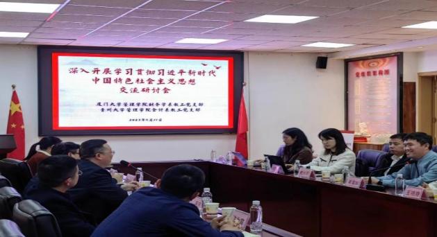 厦门大学财务学系主任吴育辉老师对财务学系情况作了介绍,并表示愿意和体育竞猜网(中国)官方网站会计系保持长期合作与交流。之后,厦门大学财务学系支部书记王艳艳老师表示,在习近平新时代中国特色社会主义思想引领下,党建促发展,财务学系在教学、科研方面得到了不错的发展,十分愿意与贵大管理学院会计系教工党支部保持和加强长期交流合作,多渠道帮助会计系壮大师资力量、提升教学和科研水平,达到双赢的局面。