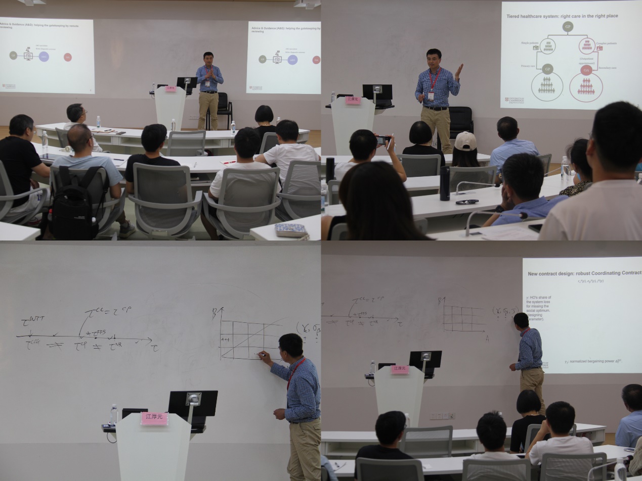 在这次讲座中,江教授分享了医疗服务系统中机制设计的前沿研究。讲座结束后,老师和同学们也针对江厚元教授的讲座内容提出了很多有意义的问题,并与他一起讨论了英国与中国在医疗保健服务领域的异同,江教授向到场的老师和同学们一一解答大家所提出的问题。江教授的讲座提供了很多新的视角和思路,现场的掌声此起彼伏,到场的老师和同学们都表示意犹未尽且感受良多、受益颇多。