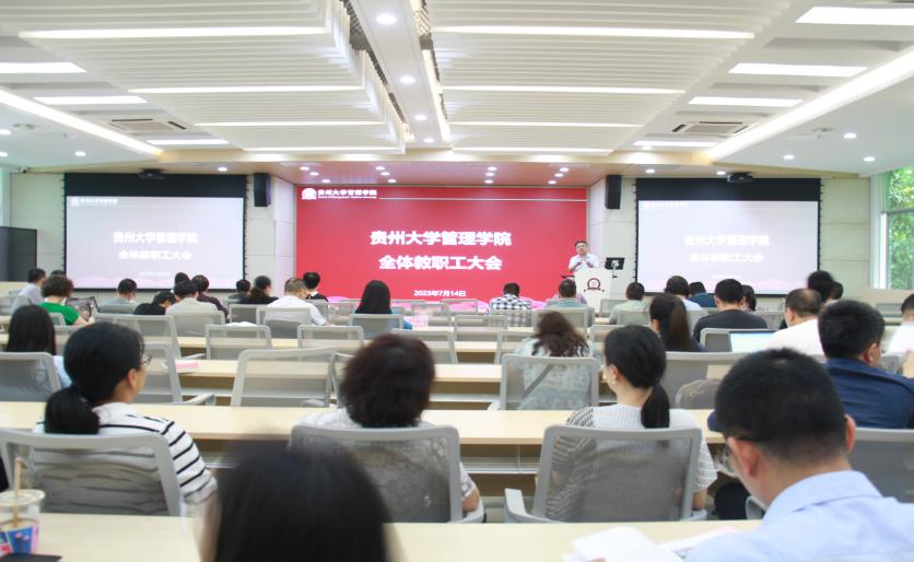 2023年7月14日中午,体育竞猜网(中国)官方网站在致远楼三楼报告厅组织召开全体教职工大会暨政治学习。学院党政领导出席会议,全体教职工及学生代表参加大会,会议由院长李烨教授主持。