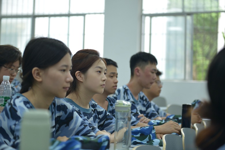 暴雨突袭,四分队进入教室,即使被雨打湿衣服,也依然以认真严谨的态度保持学习。