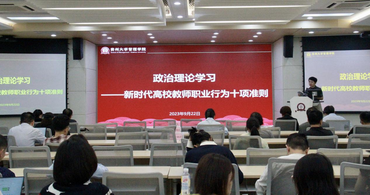 周莉莉书记按照学校组织部、人事处和教师工作处的要求,领学关于师德师风的相关文件规定。她带领大家学习了新时代高校教师职业行为十项准则、贵州省高校教师师德师范行为处理办法、贵州大学教师职业道德规范、贵州大学教师师德失范行为处理办法、贵州大学教师师德师风考核评价实施办法(2022年修订版)等内容,她强调,希望各位老师会后再认真学习相关文件,不断加强理论学习,杜绝违规行为发生,为建设良好的高校教师师德师风而努力。