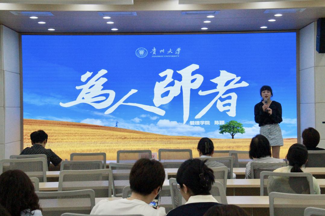 在师德师风铸魂 名师赋能成长环节,工商系陈颖老师针对师德师风建设工作进行了分享。陈颖老师以“为人师者”为主题,发表了当今高校教师角色定位多维,要有深厚专业知识,要揣“三心”、有“三度”、抓“三环”的观点,并分享了一流课程(课程目标)设计范例,最后,陈颖老师提出老师要自省吾身,并指出部分学生为得高分而选修轻松课程、放弃重要课程的现实问题值得大家思考。