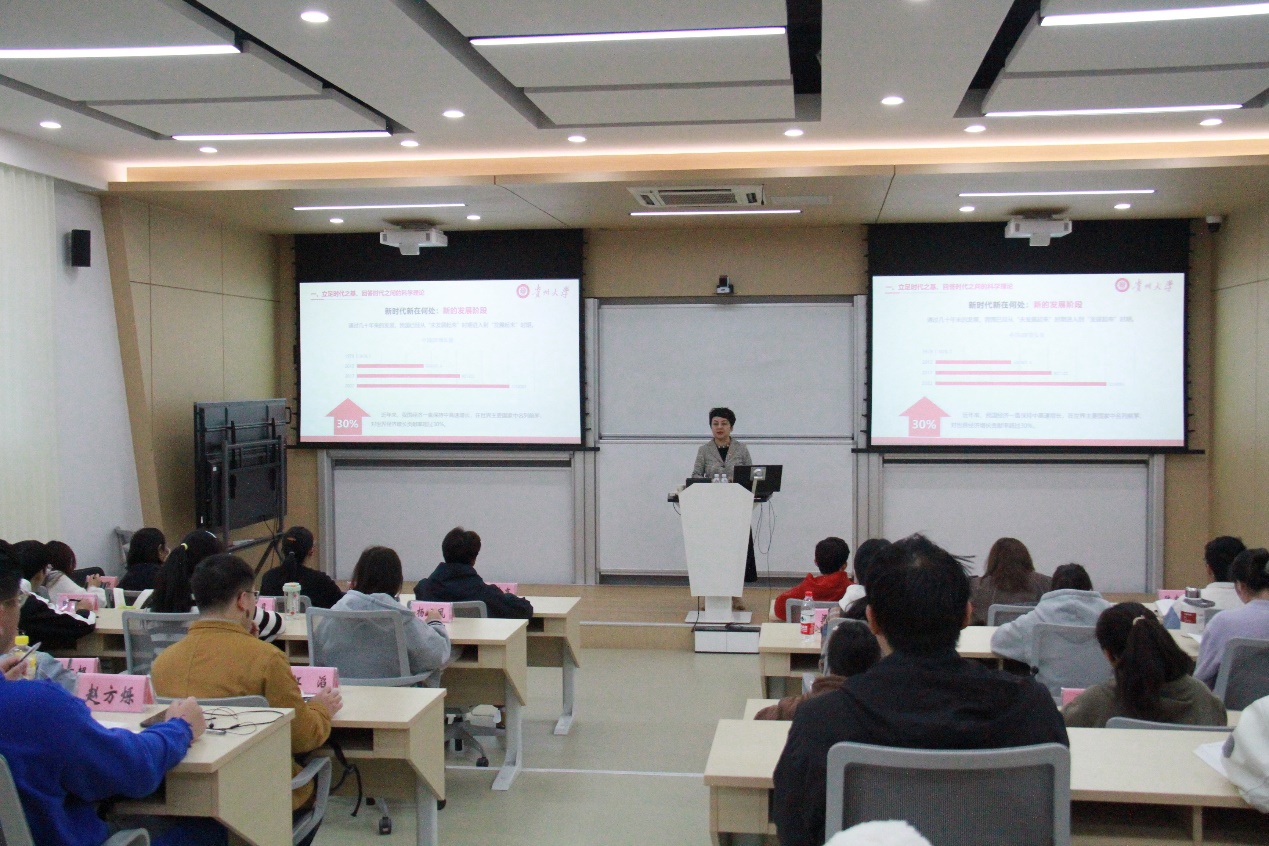 2023年10月21日,体育竞猜网(中国)官方网站分党校第三十九期入党积极分子培训班专题党课——习近平新时代中国特色社会主义思想,在管理学院致远楼102教室举行。贵州大学党委正处级组织员、管理学院党委副书记(主持党委工作)周莉莉担任主讲人。