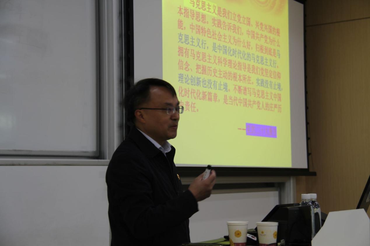 接着,李院长从创立背景与过程、科学内涵、创新与特色、发展与贡献、创立意义五个方面对马克思列宁主义、毛泽东思想、邓小平理论、“三个代表”重要思想、科学发展观和习近平新时代中国特色社会主义思想做出了详细讲解,为同学们展示了中国共产党指导思想的发展演进历程,并指出同学们需要深入学习和坚定中国共产党的指导思想,方向不能搞偏,充分发挥先锋模范作用。