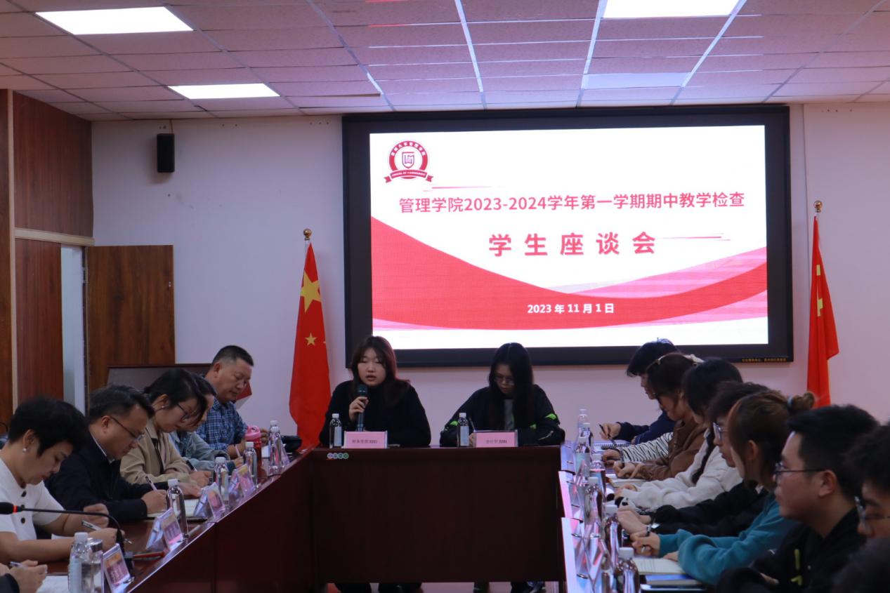 2023年11月1日,体育竞猜网(中国)官方网站在三楼陈列室召开了2023-2024学年第一学期本科期中教学检查学生座谈会。会议由管理学院分管本科教学的李本光副院长(正处级)主持,管理学院院长李烨教授、贵州大学正处级组织员、管理学院党委副书记(主持工作)周莉莉教授、管理学院党委副书记邓琳老师、各系主任、副主任、教学科老师、学生科老师、院督导代表及24名2020级、2021级、2022级学生代表参加了座谈会。