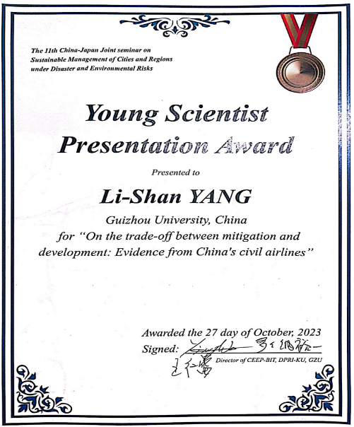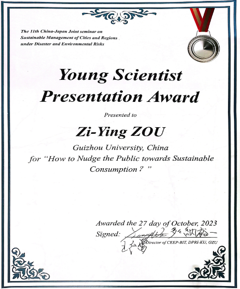 此次会议根据论文选题、演讲能力、报告内容和问题回答等四个方面,对全体参会学生的学术报告进行了评估,对其中优秀者颁发青年科学家最佳论文奖。其中,体育竞猜网(中国)官方网站博士生孙昕荣获一等奖,硕士生邹紫莹荣获二等奖,硕士生杨莉杉、贾婷文荣获三等奖。
