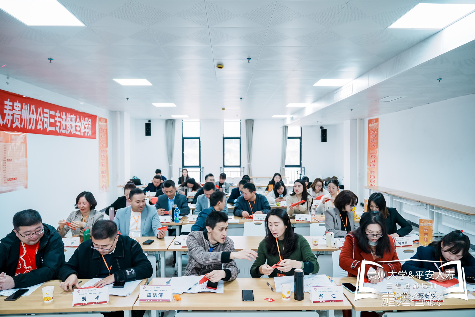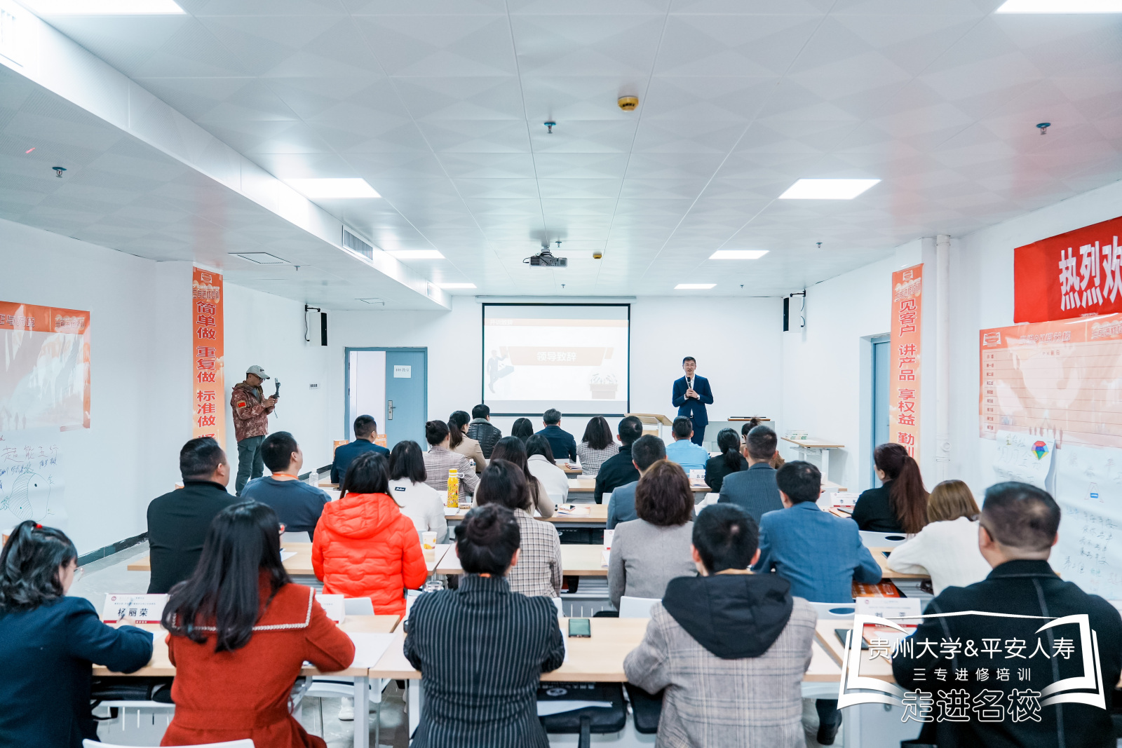 11月15日,贵州大学-平安人寿贵州分公司三专进修班正式开班。该培训班旨在提升平安人寿贵州分公司一年内新代理人技能素质,以适应开门红节奏及业绩推进。