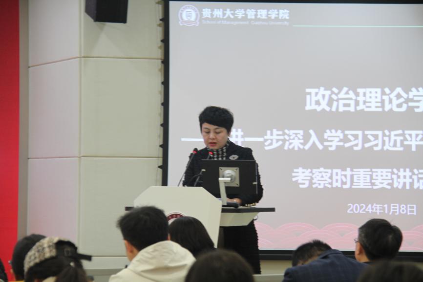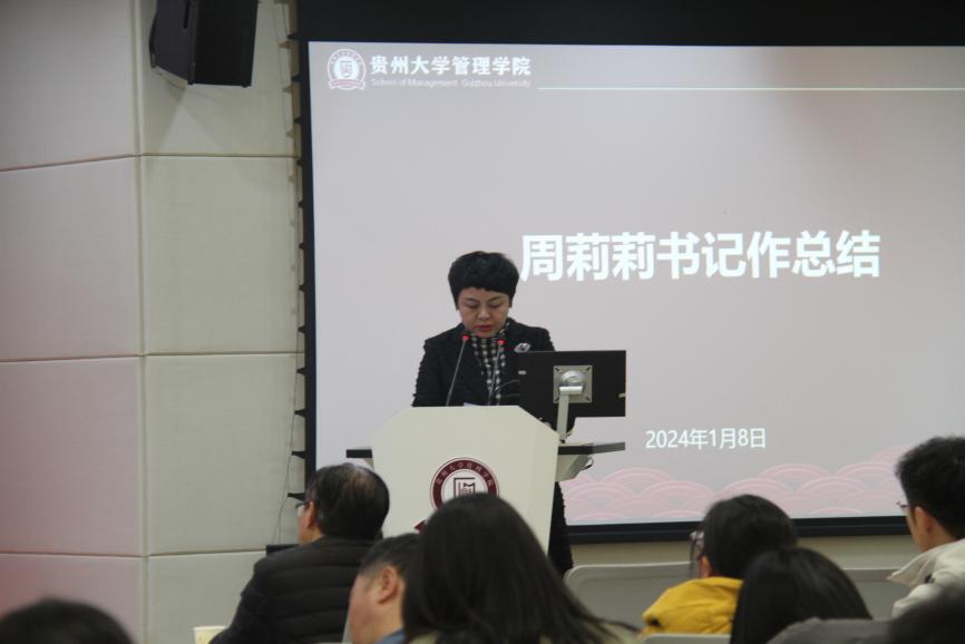 李烨院长通报总结2023年度管理学院推进的主要工作和取得的成效,表扬并肯定全体教职工2023年度的工作成果,同时也指出部分不足之处,鼓励学院全体教职工继续奋斗,在新的一年里再接再厉,有所突破。