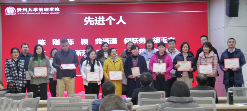 随后,学院对2023年度管理学院“先进个人”“先进部门(集体)”进行表彰,学院领导为获表彰的集体和个人颁发荣誉证书。共计表彰“先进个人”48人,“先进部门(集体)”6个。李烨院长对获得表彰的个人和集体表示祝贺,并勉励大家在2024年接续奋斗,再创佳绩。
