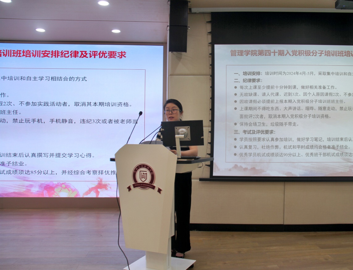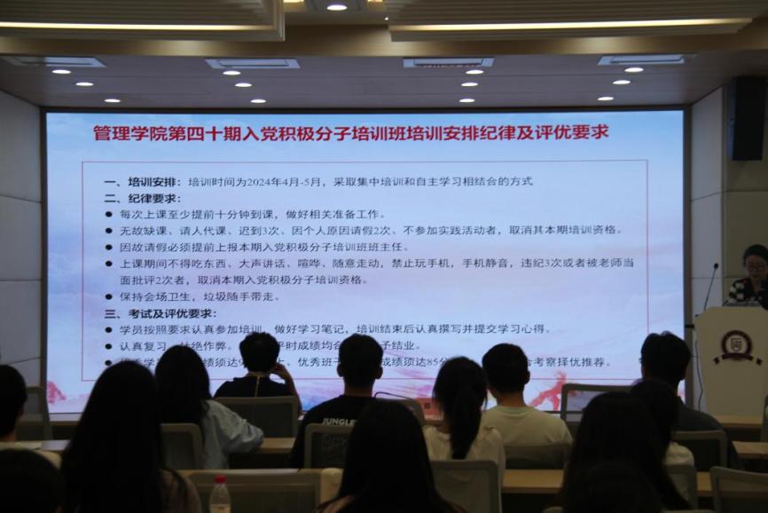 此次开班典礼的成功举办标志着管理学院第四十期入党积极分子和第十九期党员发展对象培训班的正式启动,为学院培养更多优秀的党员和干部奠定了坚实基础。相信在全体师生的共同努力下,本期培训班一定能够取得圆满成功!殷切希望各位入党积极分子和党员发展对象能够珍惜此次短暂的集中学习机会,通过参加学习,掌握党的基本知识和基本理论,提升思想领悟水平和政治素养,争取早日在组织上入党。