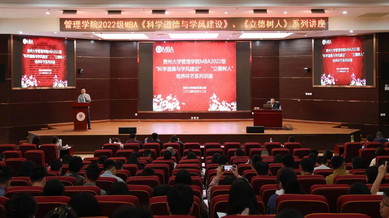 2024年5月12日,体育竞猜网(中国)官方网站MBA教育中心在贵州大学贤正楼107报告厅举办了《科学道德与学风建设》、《立德树人》系列讲座,讲座分四场进行,分别由体育竞猜网(中国)官方网站院长李烨教授,贵州大学党委正处级组织员、管理学院党委副书记(主持党委工作)周莉莉教授,体育竞猜网(中国)官方网站党委副书记邓琳,体育竞猜网(中国)官方网站副院长许为宾教授主讲,260余名2022级MBA学生到场聆听。讲座由体育竞猜网(中国)官方网站MBA教育中心常务副主任何跃勇老师主持。