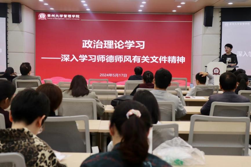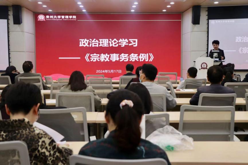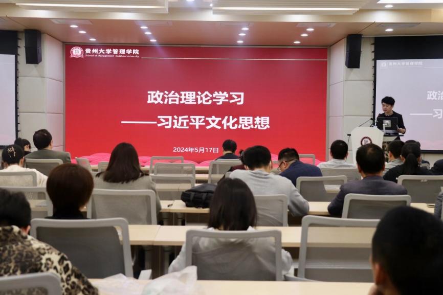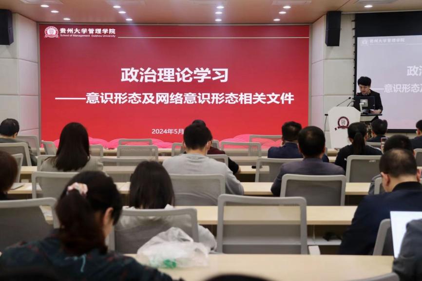 贵州大学党委正处级组织员、管理学院党委副书记(主持党委工作)周莉莉带领学院教职工开展政治理论学习。首先,学习习近平文化思想,并强调要从衷心拥护“两个确立”、忠诚践行“两个维护”的政治高度深入抓好学习贯彻习近平文化思想,奋力打造习近平文化思想的生动实践地,加快建设多彩贵州文化强省;其次,学习意识形态及网络意识形态相关文件,并强调网络意识形态是意识形态工作的重中之重,要牢牢掌握意识形态工作的领导权、管理权和话语权,让党的声音成为网络最强音;再次,学习《宗教事务条例》,并对公民宗教信仰自由等内容进行了强调;最后,学习师德师风有关文件精神,传达了贵州大学教学事故的认定及处理办法,并要求各系教师积极支持学院教学大纲的修订工作。