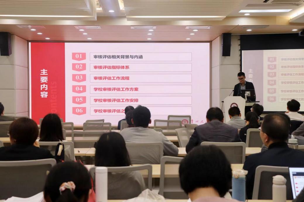2024年5月17日下午,体育竞猜网(中国)官方网站本科教育教学审核评估工作专题培训会在致远楼三楼报告厅召开,学院党政领导、全体教职工参会,本次培训会由副院长许为宾教授主讲。