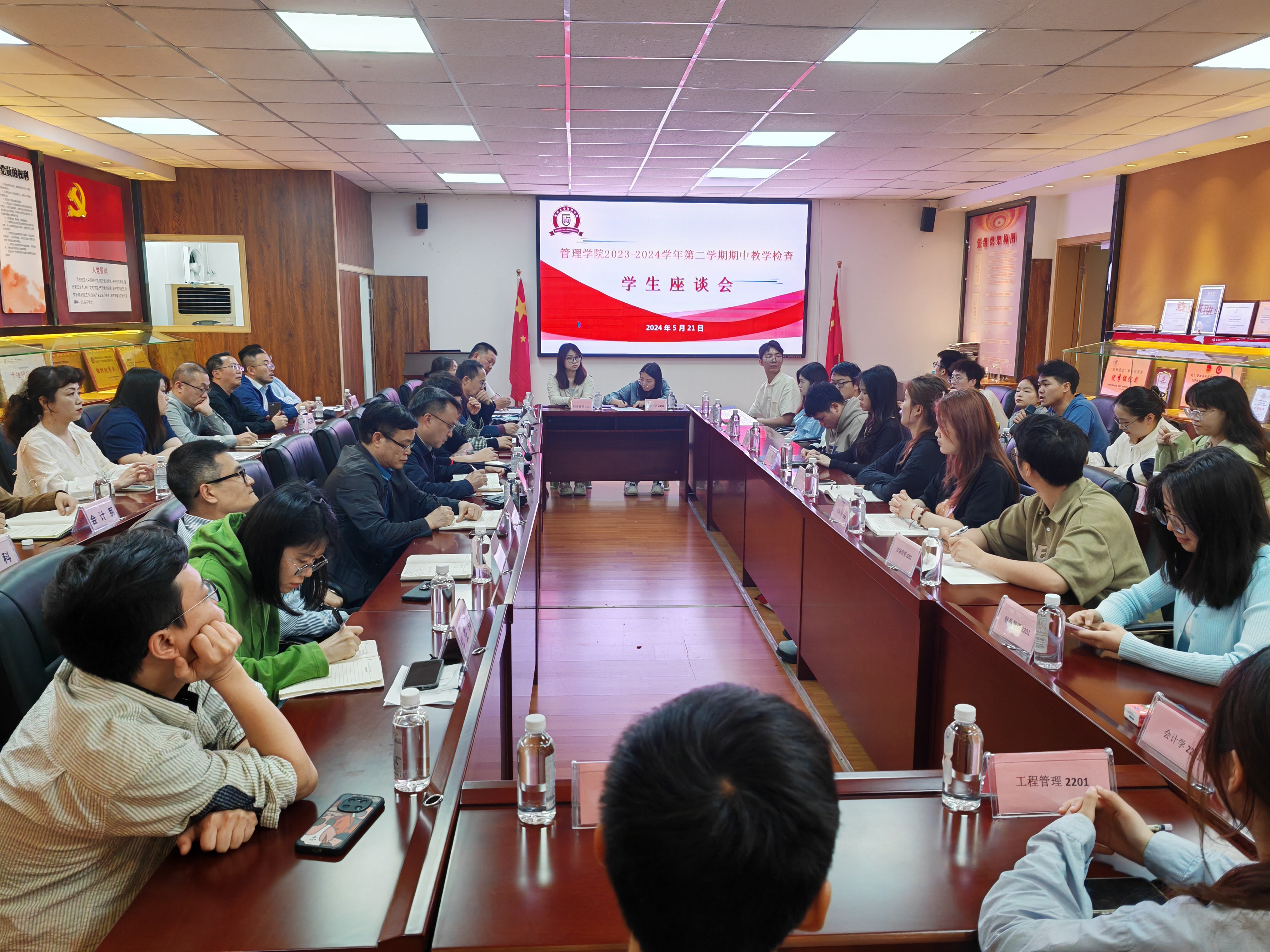 2024年5月21日,体育竞猜网(中国)官方网站在三楼陈列室召开了2023-2024学年第二学期本科期中教学检查学生座谈会。会议由管理学院分管本科教学的李本光副院长(正处级)主持,管理学院院长李烨教授、贵州大学党委正处级组织员、管理学院党委副书记(主持党委工作)周莉莉教授、管理学院党委副书记邓琳老师、管理学院副院长许为宾教授、各系主任、副主任、教学科、学生科全体老师、院督导组代表及2020级、2021级、2022级各班学生代表参加座谈会。
