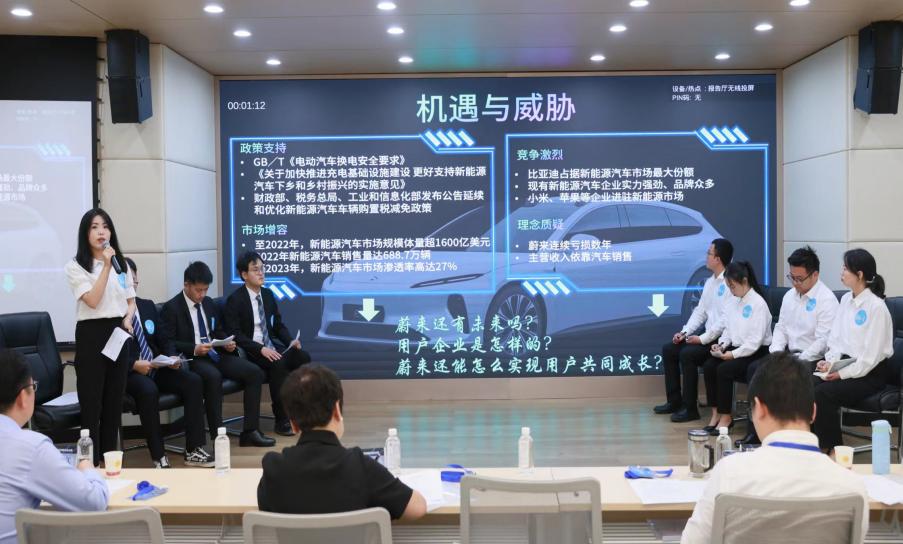 主持人详细介绍了对阵队伍、比赛规则、评分标准和奖项设置后,比赛正式拉开帷幕。本次共有10支参赛队伍进入决赛,分别来自体育竞猜网(中国)官方网站、贵州师范大学经济与管理学院、贵州民族大学政治与经济管理学院、贵州财经大学工商管理学院四所不同高校,经过现场抽签,10支队伍被随机分为A、B两组,进行了5轮两两对决。每支队伍针对比赛案例进行了深入分析,通过案例陈述、团队协作、现场答辩等环节,全面检验了同学们的综合素质和实践能力。参赛选手们紧扣当前国家政策和社会环境背景,提出了许多创新性想法和思路。他们的分析不仅为参赛人员和观众带来了一场思维碰撞的盛宴,还展现了较高的学术和实践价值。