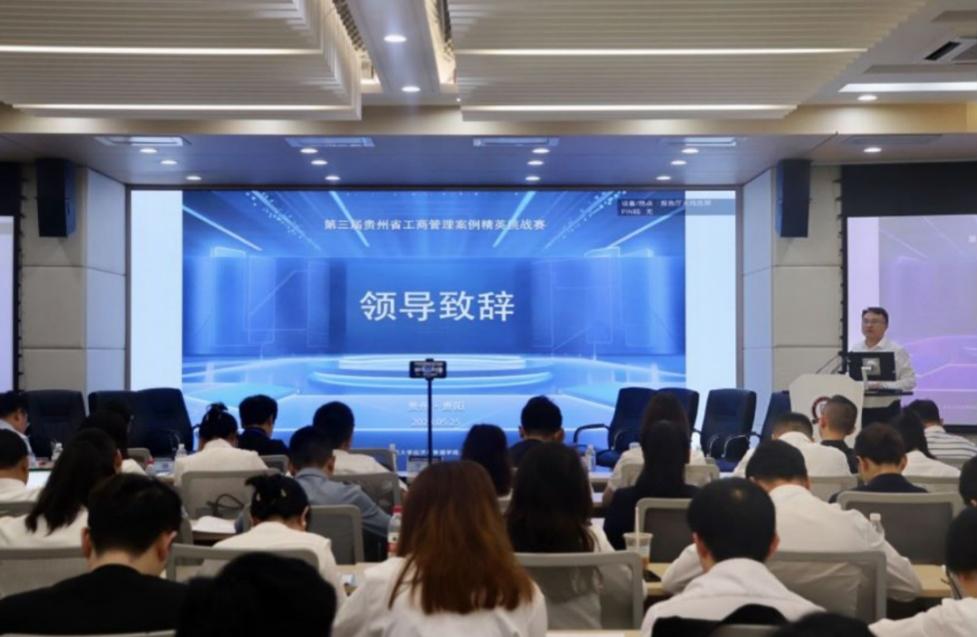 上午九点,大赛开幕式正式开始。首先,贵州大学党委委员、管理学院院长李烨教授致辞。他强调本届挑战赛旨在通过深入剖析管理案例,激发学生对管理学科的兴趣和热情,提升学生管理素养和解决问题的能力。促进理论与实践的紧密结合,推动工商管理教育的发展与创新。希望参赛同学们能够充分发挥自己的聪明才智,深入剖析案例,提出切实可行的解决方案。同时,也希望大家能够珍惜这次难得的学习机会,与来自不同院校的同学们相互学习、相互借鉴,共同进步。最后李烨院长预祝第三届贵州省工商管理案例精英挑战赛取得圆满成功!祝愿各位参赛同学取得优异成绩,为学校和自己的成长增添光彩!