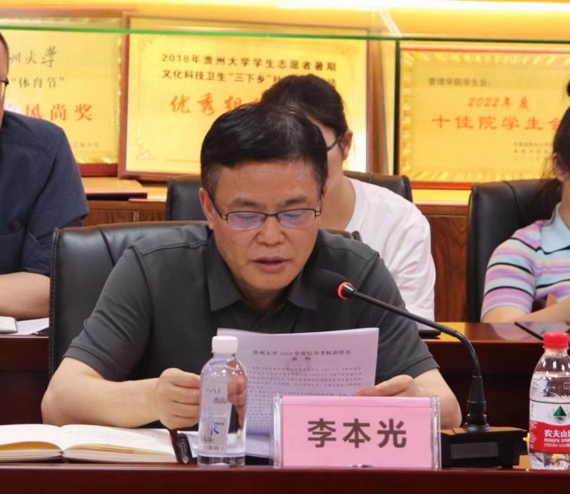 李烨院长对学院各项工作完成情况进行总结,并结合目标考核指标进行对比分析,总结出在教材&专著出版、教改论文发表及教材出版、教研室考核、本科及研究生教学质量、学科建设、社会服务、科研工作等方面存在的不足,并对各部门、各负责人员未来重点工作提出目标要求,并进行安排部署。他要求各部门(中心)、各教研室相互配合,共同协作,确保高质量完成各项考核任务。