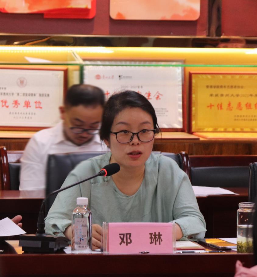 学院党委副书记兼纪委书记邓琳对党建工作、毕业生材料审核归档和转出情况、就业情况、征兵进度及警示教育等工作作了通报和部署;同时对双创中心在竞赛工作上取得的成绩进行阶段性总结并表示肯定,勉励师生继续携手并进,取得更高层次的荣誉。最后,她提醒大家假期期间要注重安全,禁止酒驾和赌博行为,教师要注重师德师风,要加强假期纪律和意识形态领域的管理。