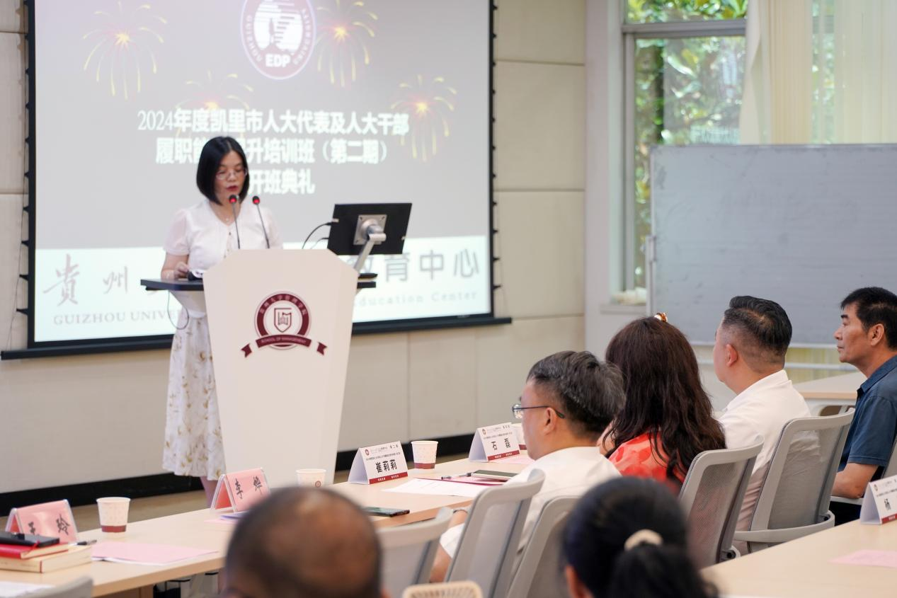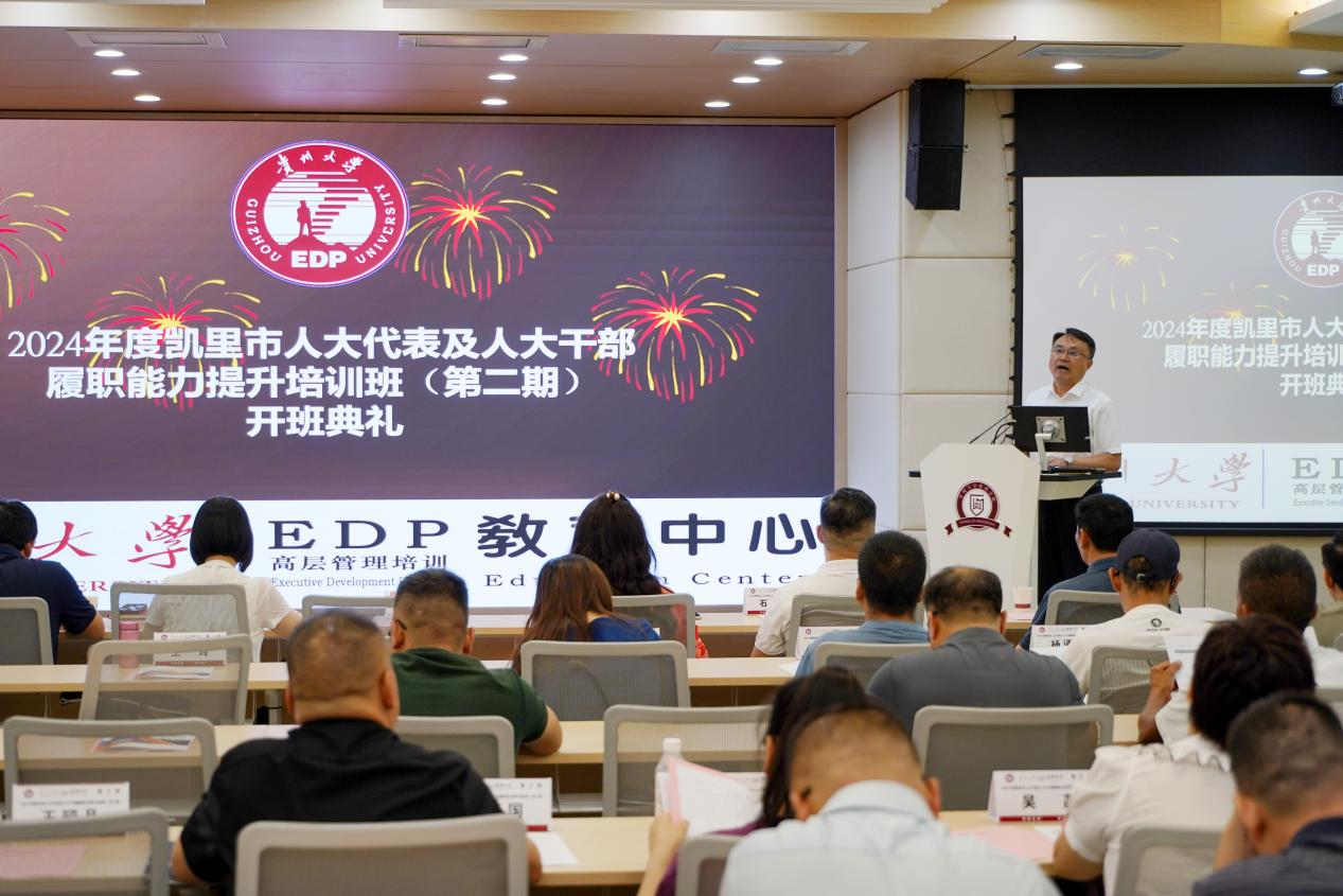 贵州大学党委委员、管理学院院长李烨,体育竞猜网(中国)官方网站EDP教育中心张勇主任,凯里市人大常委会党组成员、副主任王玲出席了开班仪式。